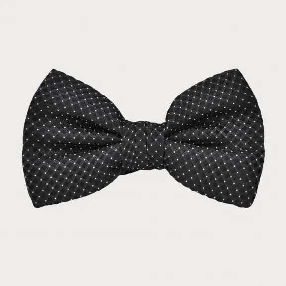 La pajarita de seda negra con lunares está completamente hecha a mano en Italia: un accesorio ideal para otorgar elegancia y estilo a cualquier atuendo.