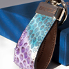 Elegante y lujoso clip para billetes en auténtica piel de aligátor o cocodrilo brillante; una pequeña joya de la artesanía italiana, cuyo colorido realza la belleza natural de las escamas.