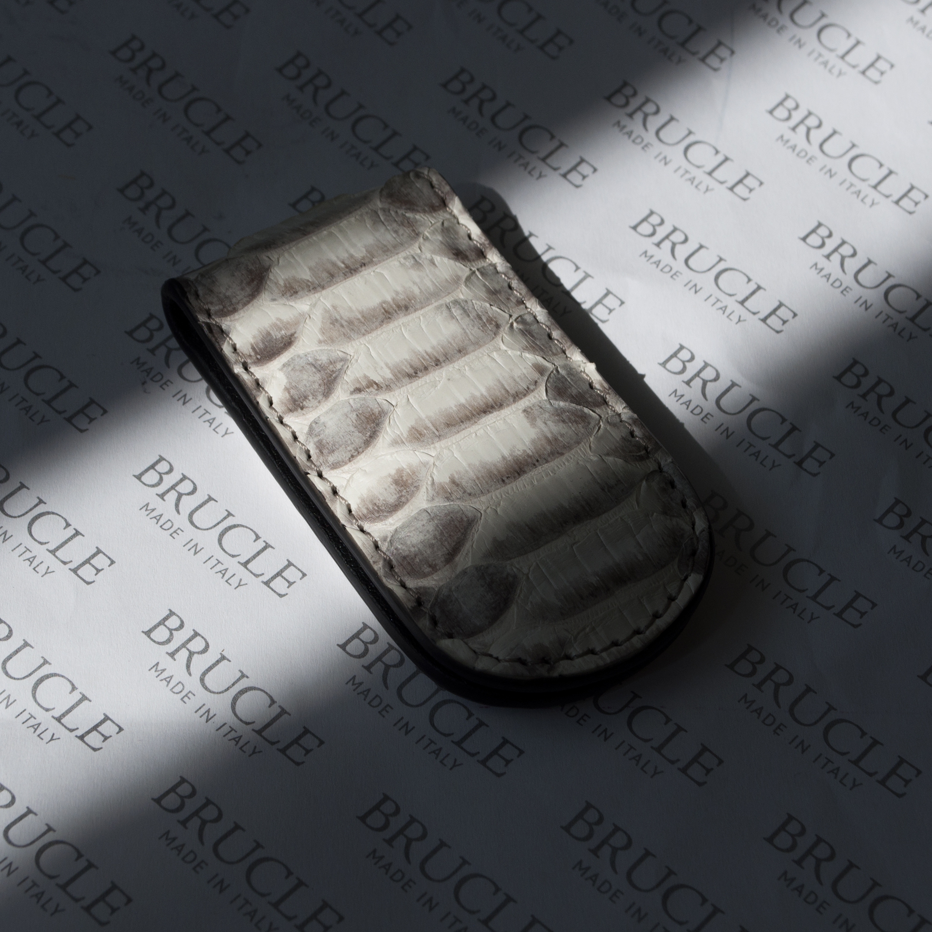 Clip para billetes en piel de pitón auténtica. Un accesorio exclusivo y de tendencia, apto para quienes aman destacar. Totalmente hecho a mano en Italia con materiales de primera elección, es una idea de regalo original.