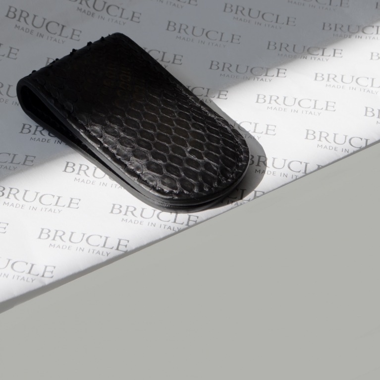 Clip para billetes en piel de pitón genuina. Un accesorio exclusivo y de moda, adecuado para quienes aman destacar. Totalmente hecho a mano en Italia con materiales de primera calidad, es una idea de regalo original.