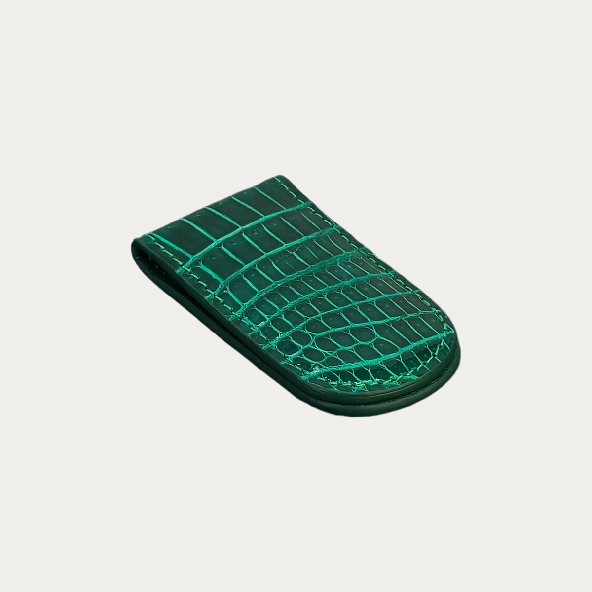 Clip para billetes magnético en cuero de cocodrilo genuino verde esmeralda brillante