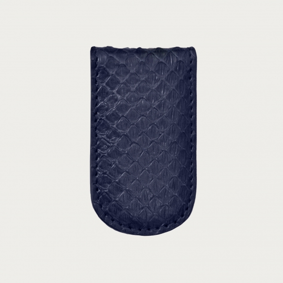Clip magnético para billetes en piel de pitón auténtica, azul