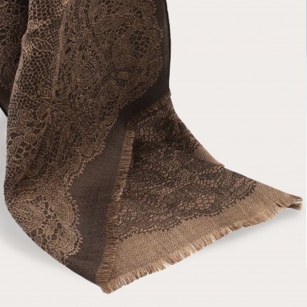 Bufanda cálida de cachemira con flecos, marrón oscuro
