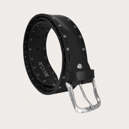 Cinturón fino de piel sin rematar con tachuelas, marrón