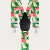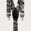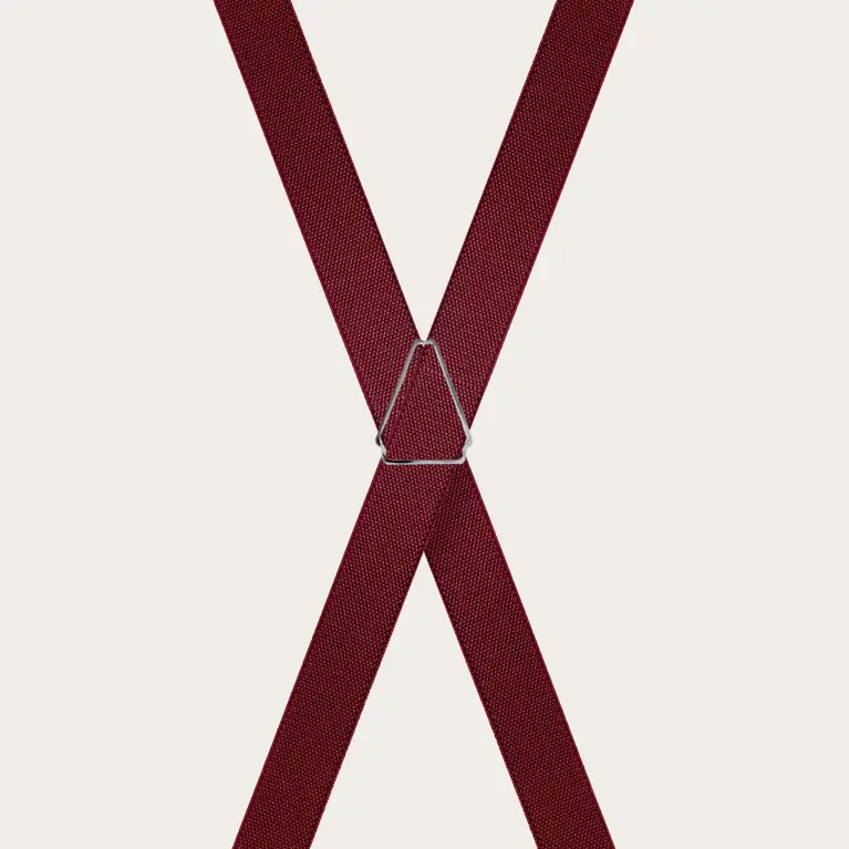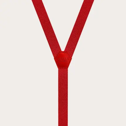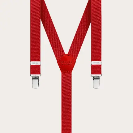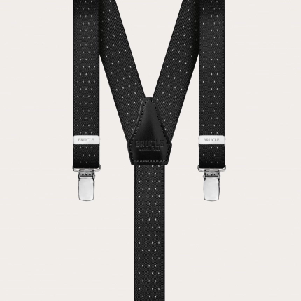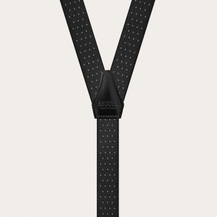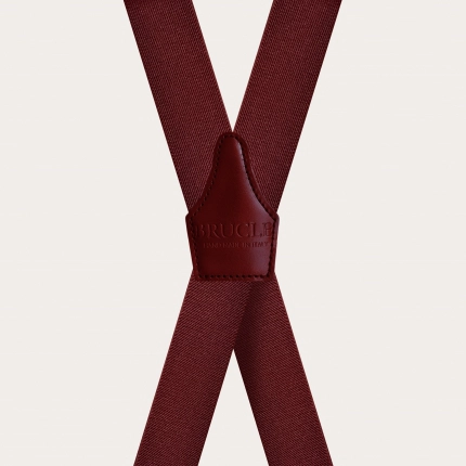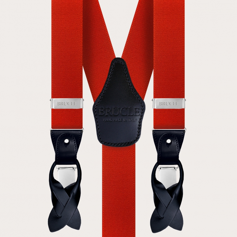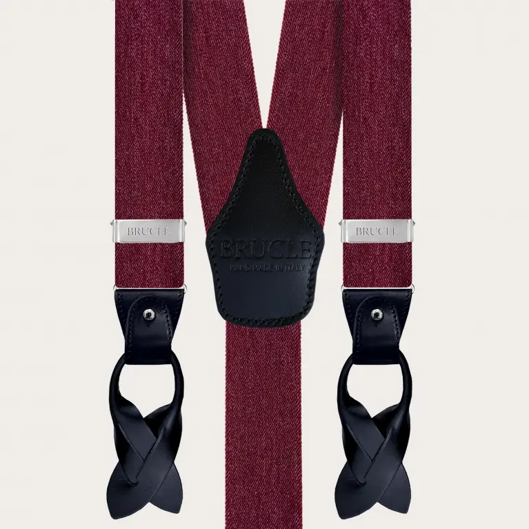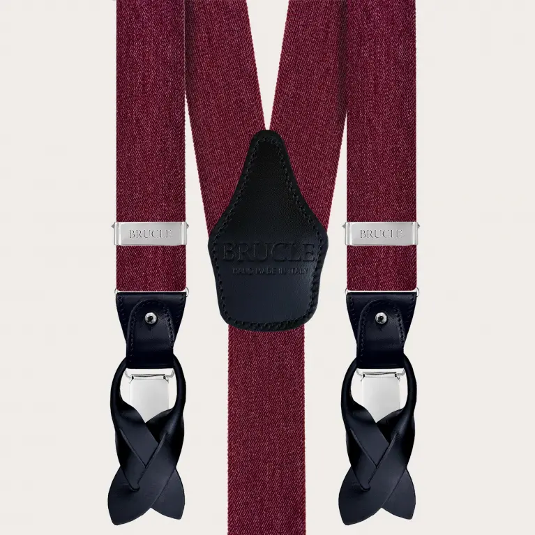 Tirantes elásticos unisex marrones con rayas azules y panel trasero de auténtico cuero saffiano a juego.