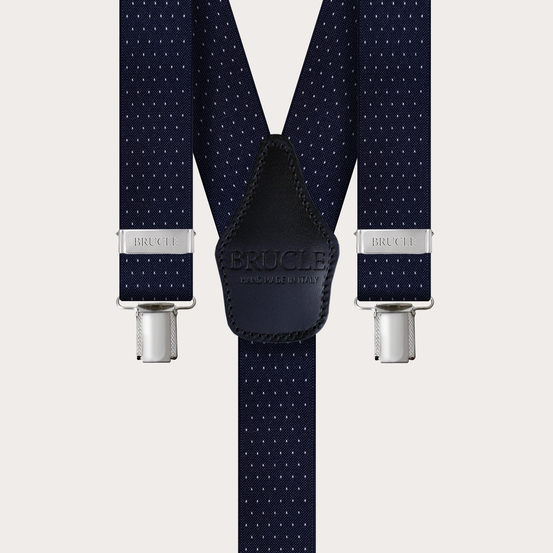 Tirantes en forma de Y con clip de sujeción, azules con estampado de puntos.