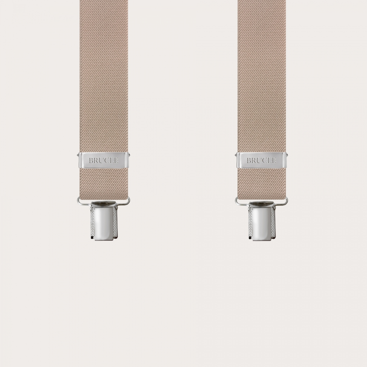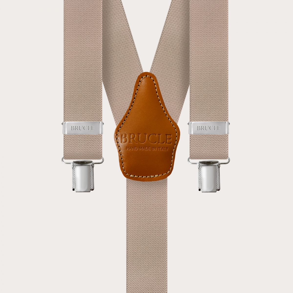 Tirantes elásticos unisex beige en forma de Y, hechos a mano en Italia con elástico y clip de calidad.