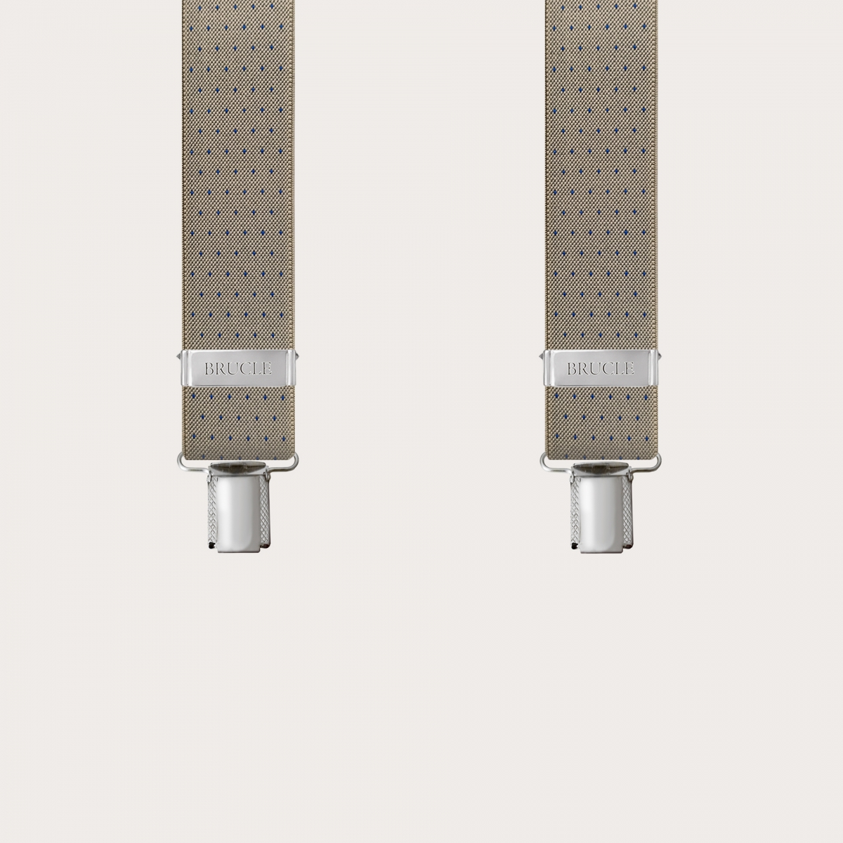 Tirantes en forma de Y con clip de sujeción, beige con estampado de puntos.