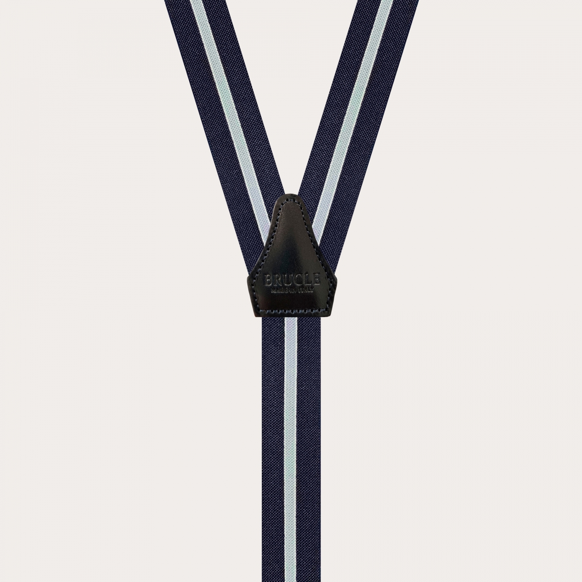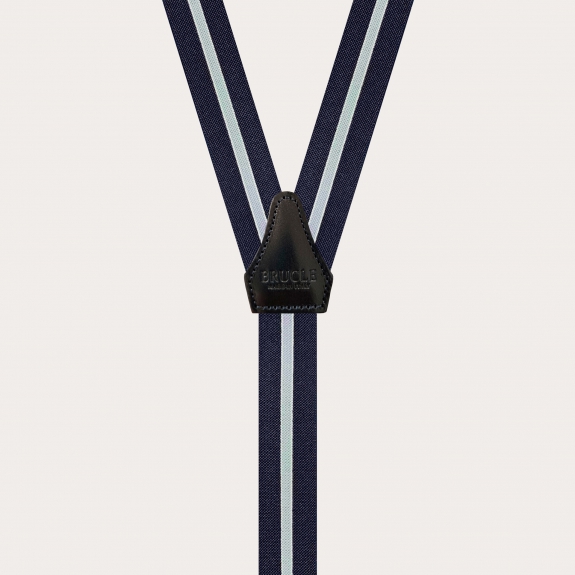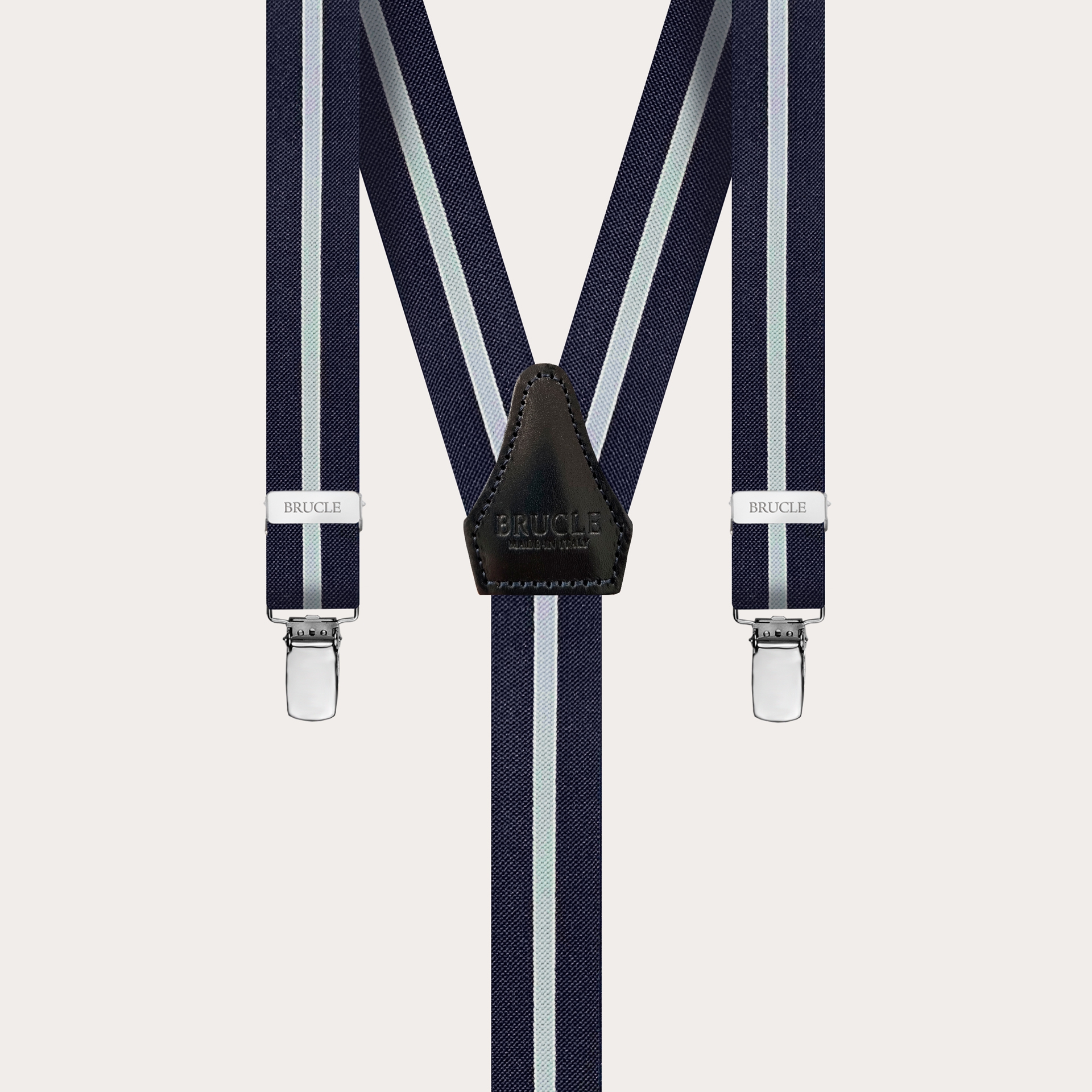 Tirantes elásticos de rayas azules con cierre de clip. El patrón a rayas atemporal se combina con un moderno modelo de tirantes para un resultado ponible.