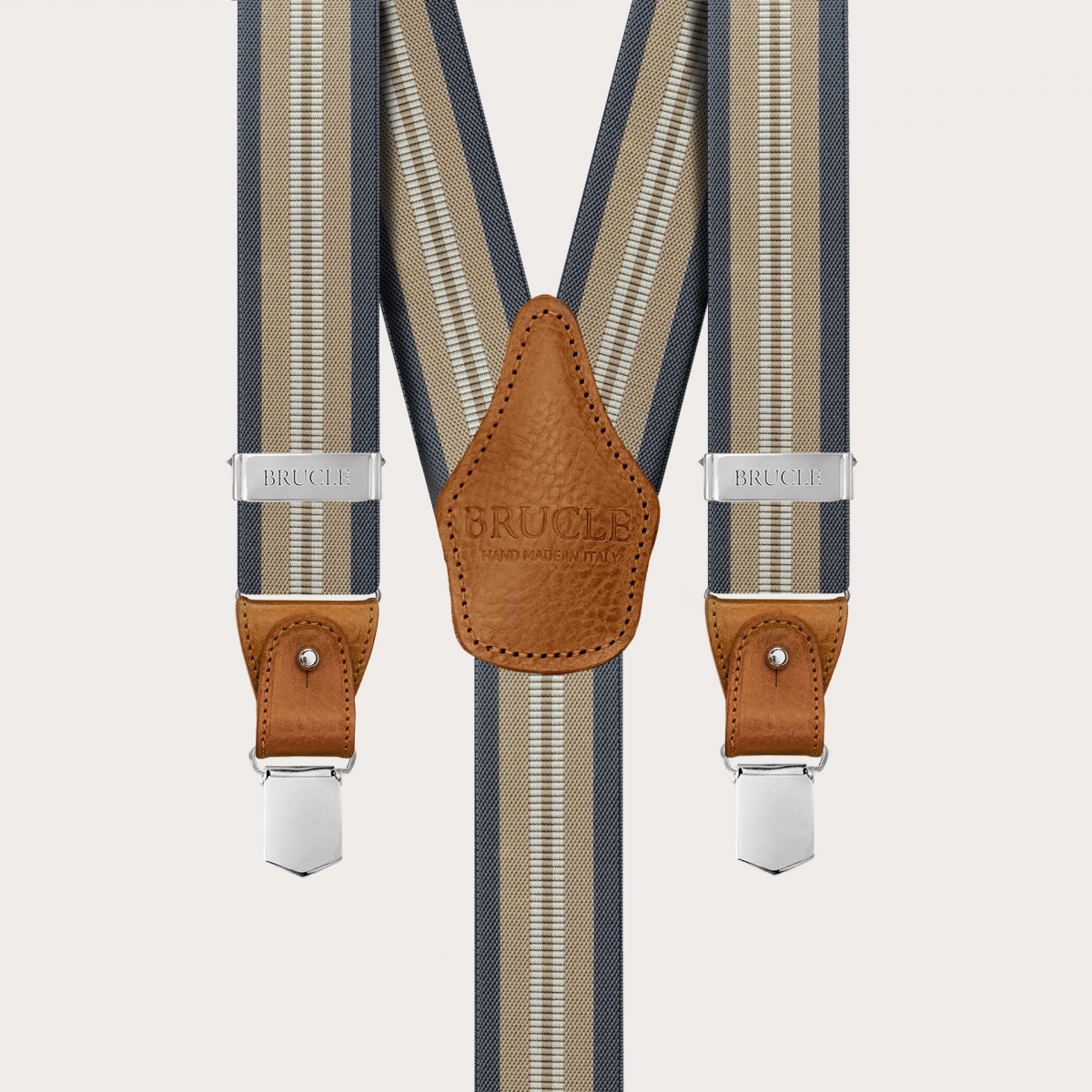 Tirantes a rayas beige y azul para botones o clips