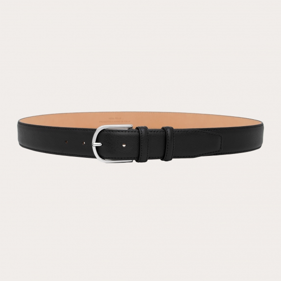Cinturón reversible de cuero Saffiano negro y marrón oscuro niquel free