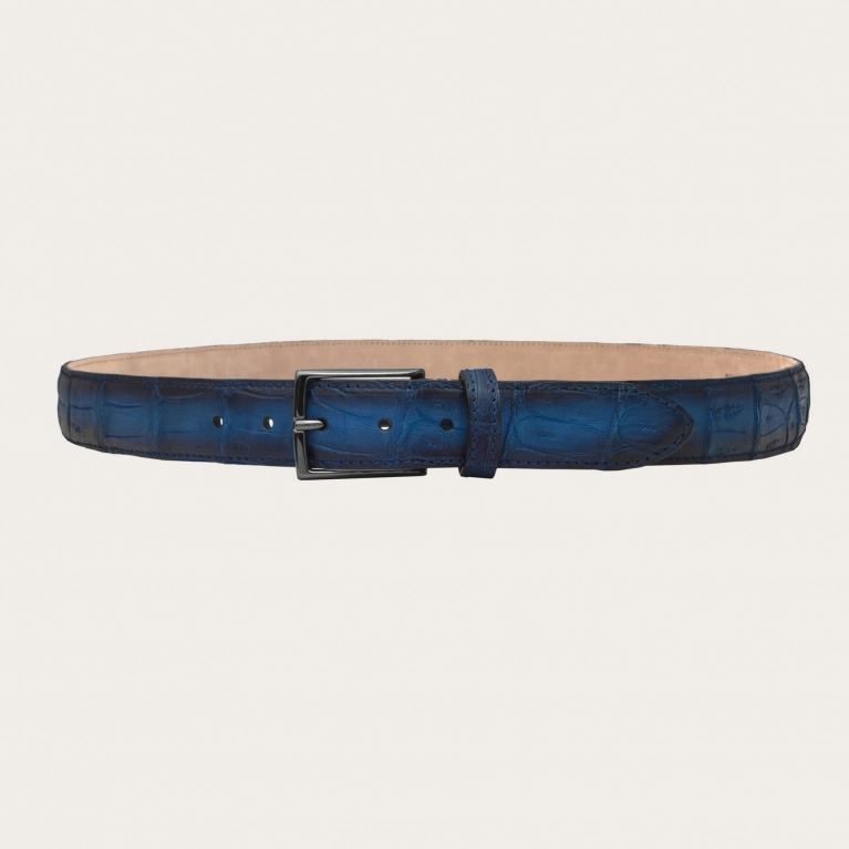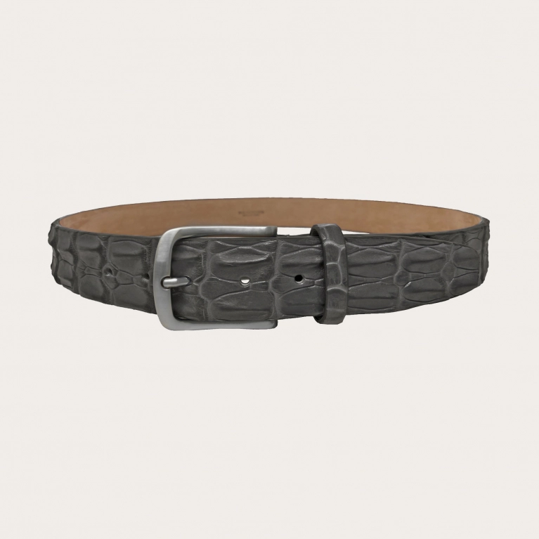Un cinturón exclusivo, hecho de cocodrilo del Nilo, utilizando la parte posterior, caracterizado por escamas en relieve que otorgan un efecto tridimensional a este espléndido cinturón.