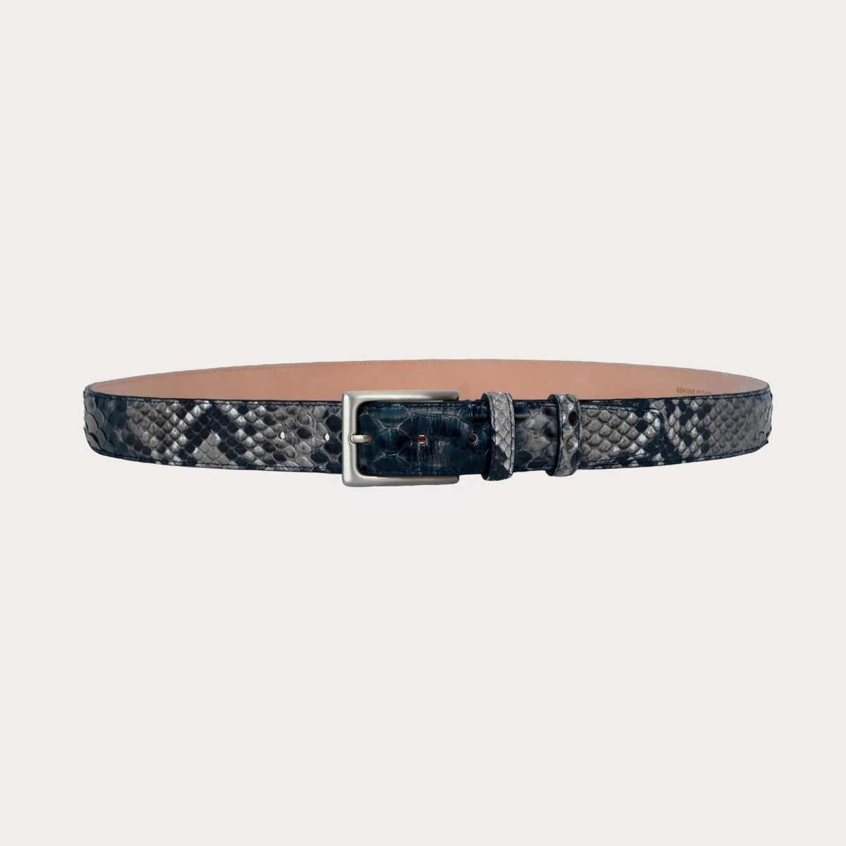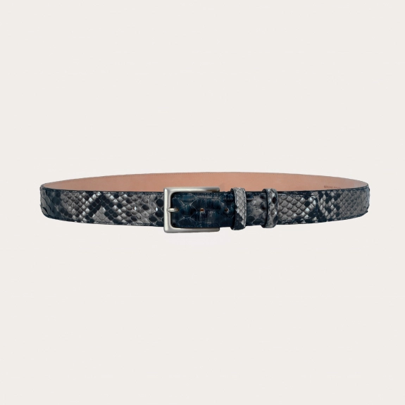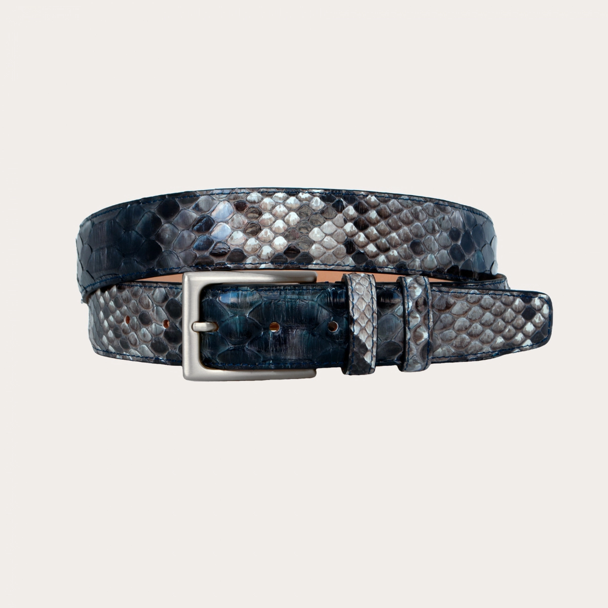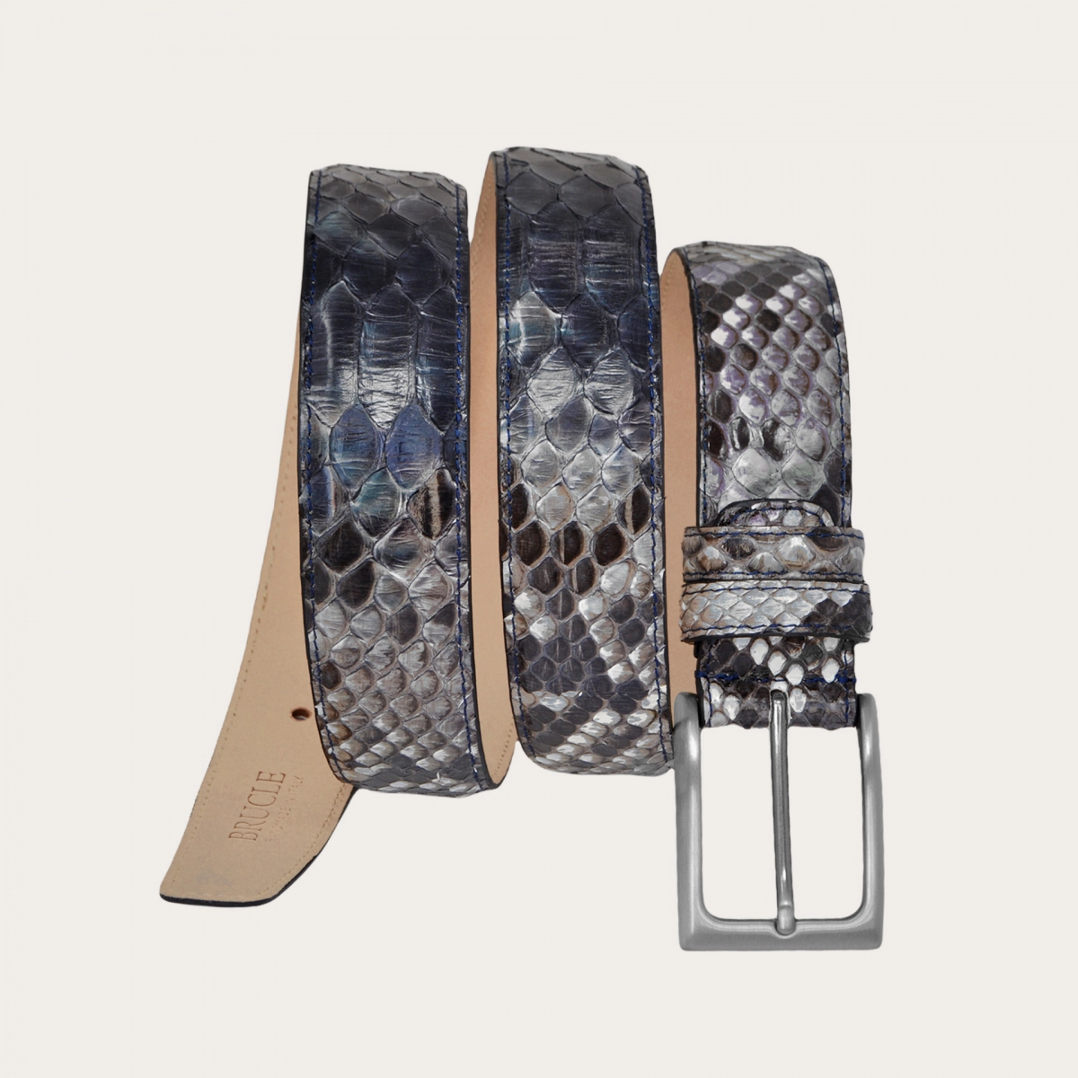 Cinturón refinado hecho a mano en pitón genuino en un color barro brillante adornado con acolchado a mano. Confeccionado con las mejores pieles exóticas y acabados de lujo. 100% Hecho en Italia.