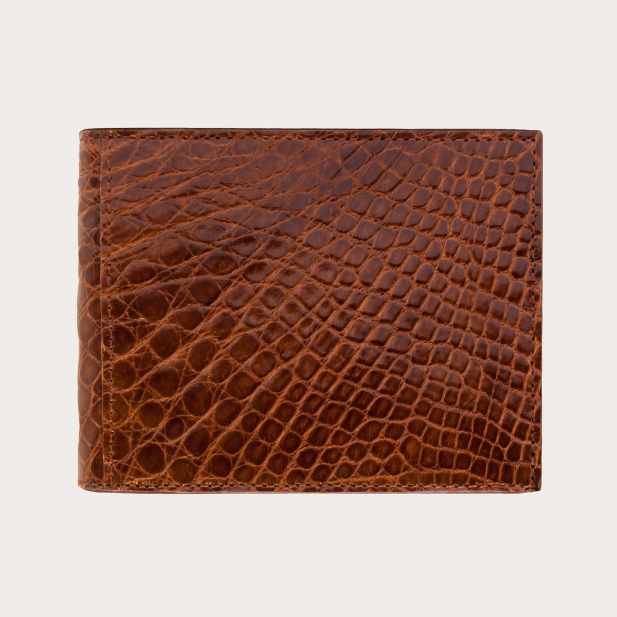 Cartera de hombre en cocodrilo de un exclusivo color madera, expresión de lujo y sofisticación.