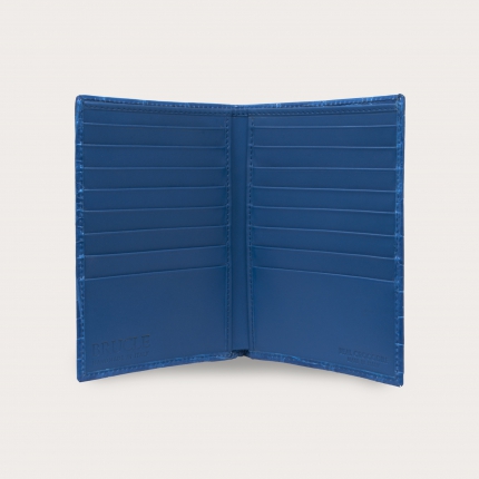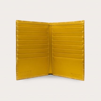 Elegante billetera de hombre realizada en el flanco de cocodrilo en el clásico color marrón oscuro, que realza la belleza de la auténtica piel de cocodrilo.