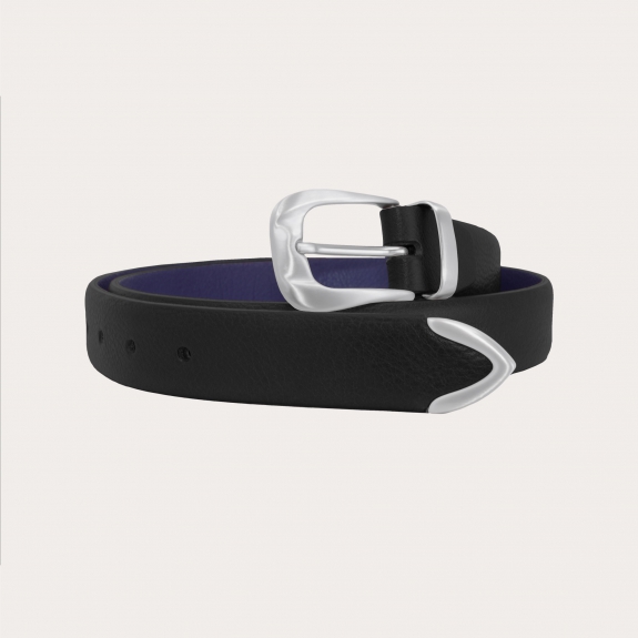Cinturón negro fabricado en cuero auténtico curtido al vegetal, con hebilla pasante y punta en latón satinado libre de níquel. Su diseño sobrio y moderno lo convierte en el complemento ideal para atuendos clásicos o vanguardistas. Un modelo exclusivo de BRUCLE, hecho a mano en Italia.