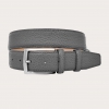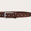 Cinturón marrón oscuro en cuero genuino con estampado saffiano, terminado con una hebilla de latón brillante libre de níquel. Un cinturón versátil y refinado, adecuado para cualquier tipo de look, desde el chic moderno hasta el deportivo. Como todos los cinturones para hombre y mujer de BRUCLE, este cinturón es fácil de acortar y personalizable con grabados en la hebilla, forro y punta. Si tienes dudas sobre qué talla comprar, consulta nuestra guías de tallas para cinturones.
