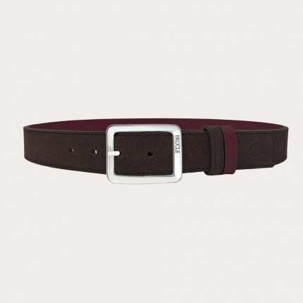 Cinturón de ante color caramelo en cuero genuino, acabado con hebilla libre de níquel y forro de nubuck de primera calidad.