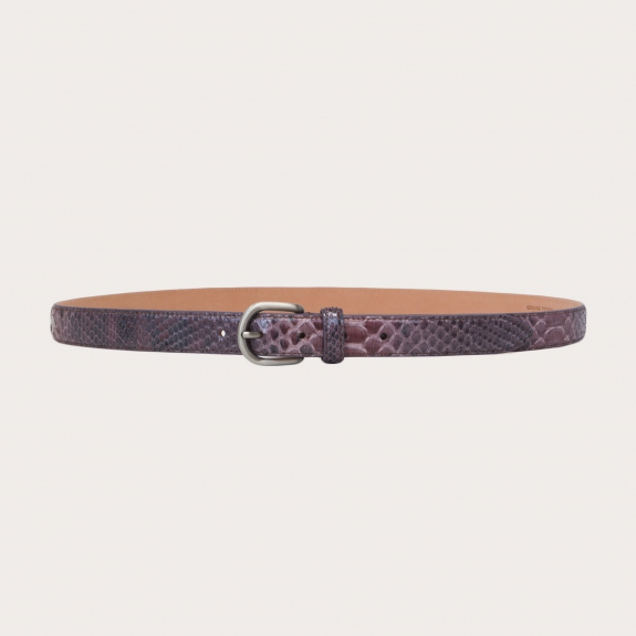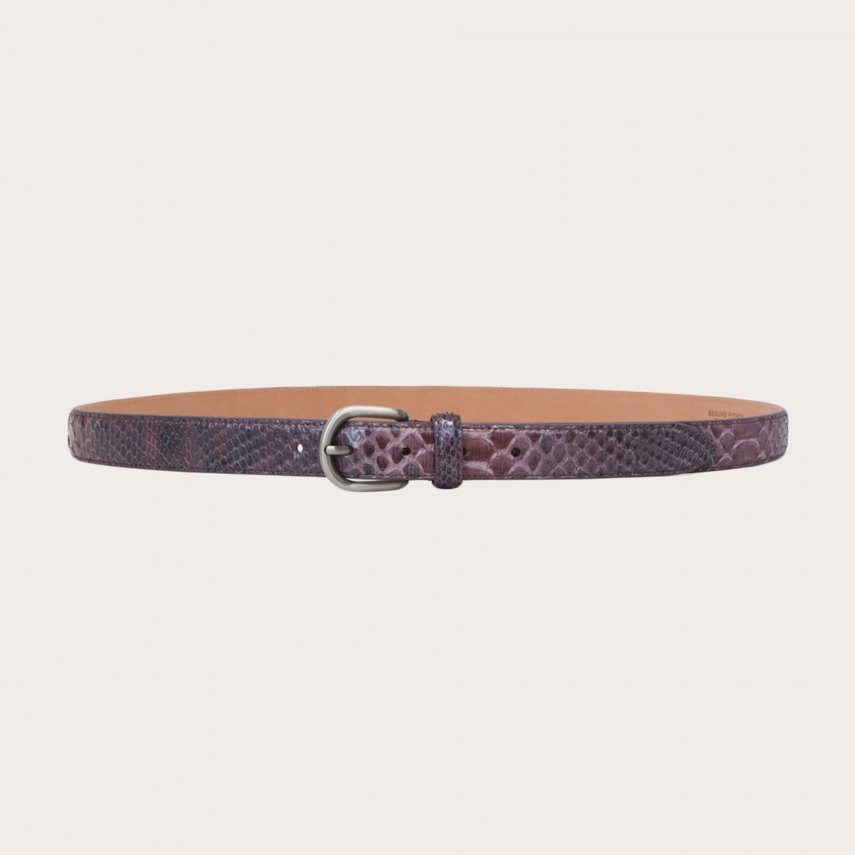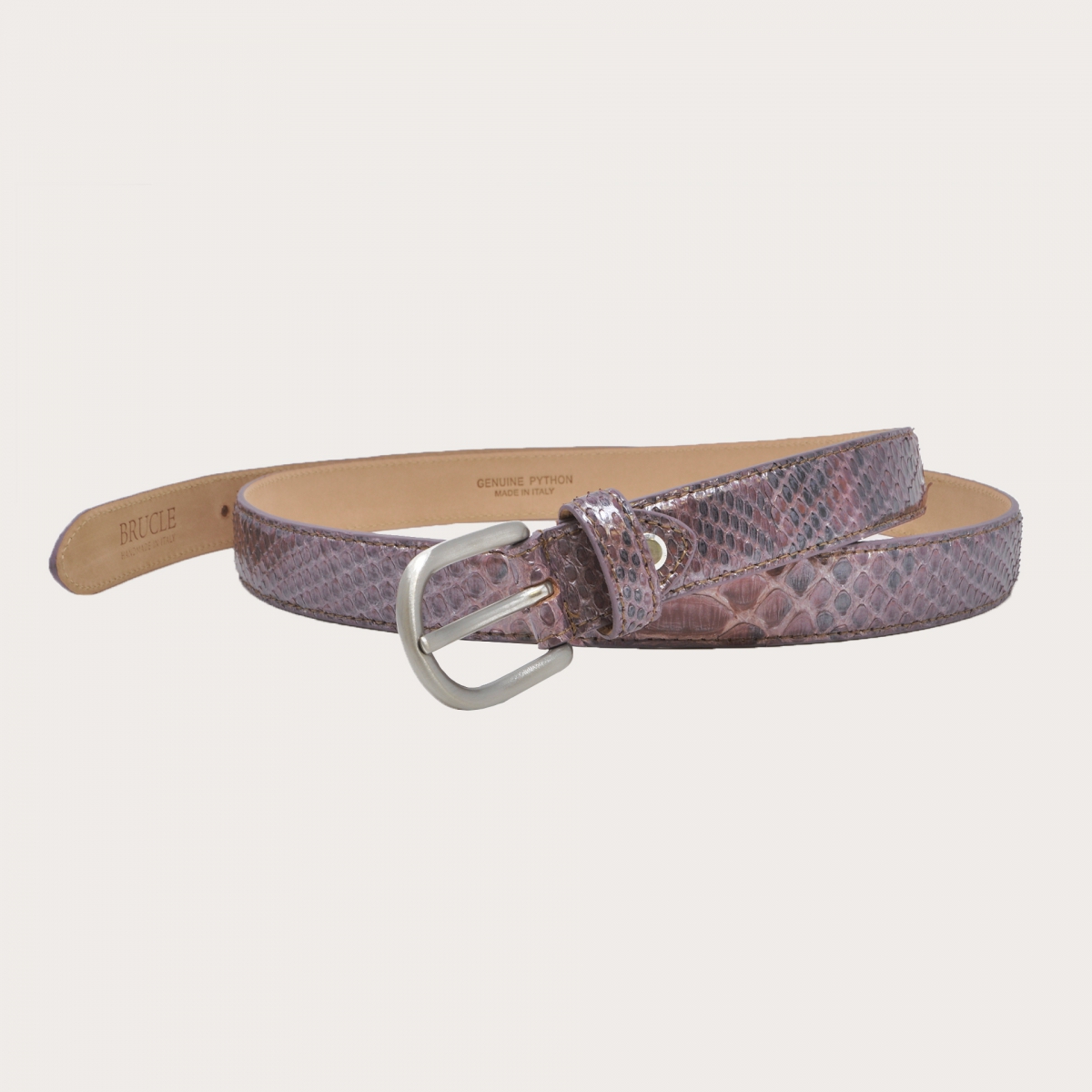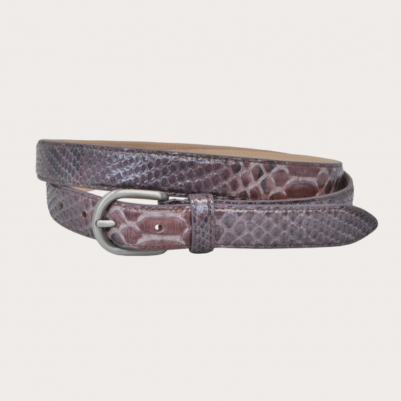 Cinturón de pitón gris polvoriento con hebilla plateada sin níquel
