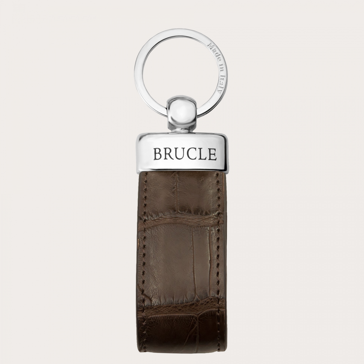 Descubre la sofisticación del llavero de auténtica piel de cocodrilo. Cada pieza, hecha a mano por nuestros artesanos, celebra el prestigio del Hecho en Italia, asegurando un producto de alta calidad con su cuero certificado CITES único e inimitable. Este llavero de tonos marrones oscuros representa un símbolo de estilo y refinamiento para aquellos que aman destacarse.