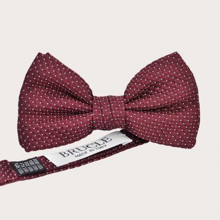 Pajarita infantil para los más pequeños confeccionada en pura seda italiana. Ideales para ceremonias y ocasiones especiales, están disponibles en diferentes colores sólidos y estampados de lunares. Las pajaritas y tirantes de niños a juego son inevitables.