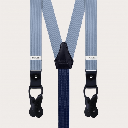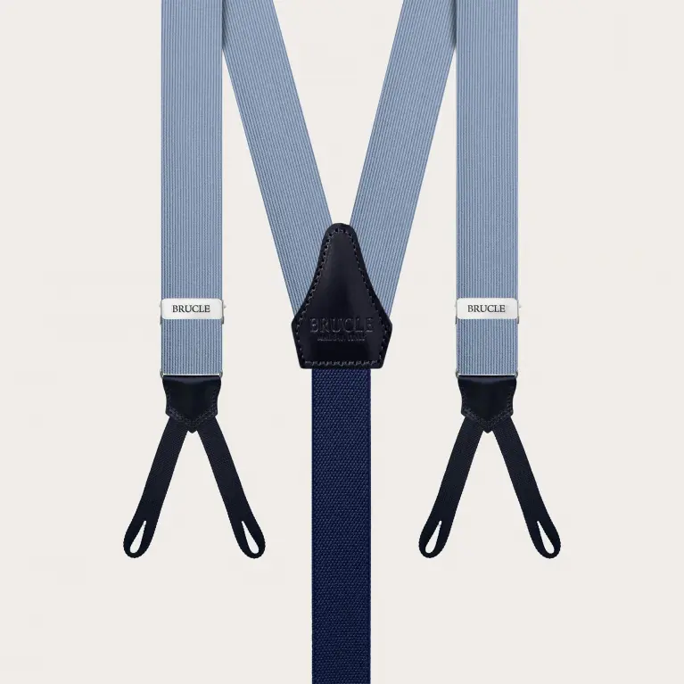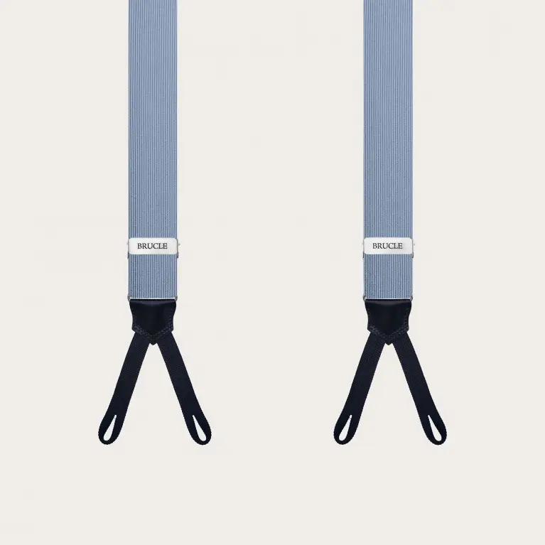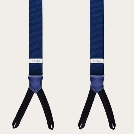 Tirantes de seda azul refinados; el tejido suave y brillante es perfecto para embellecer trajes de ceremonia, especialmente en tonos de azul.