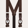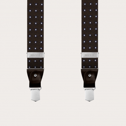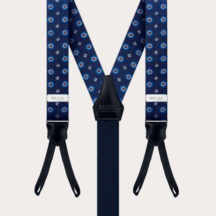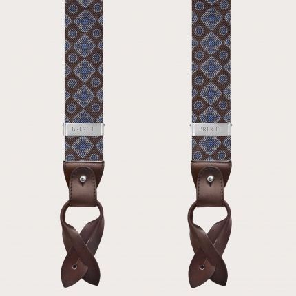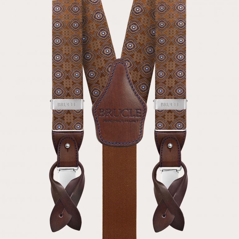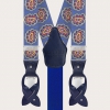 Producidos con pura seda de 99 hilos tejida en Como, un centro mundialmente reconocido de tejeduría de seda, estos tirantes realzan el sofisticado diseño paisley y se completan con detalles en cuero coloreados y matizados a mano.