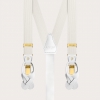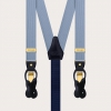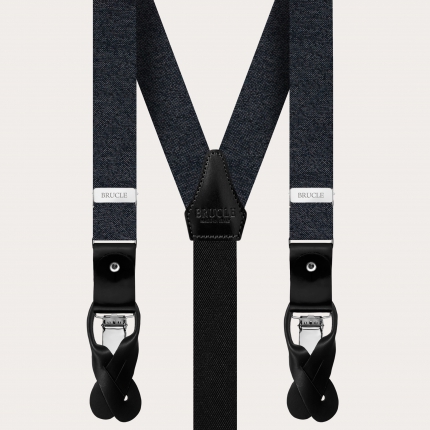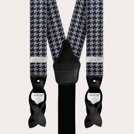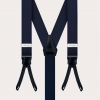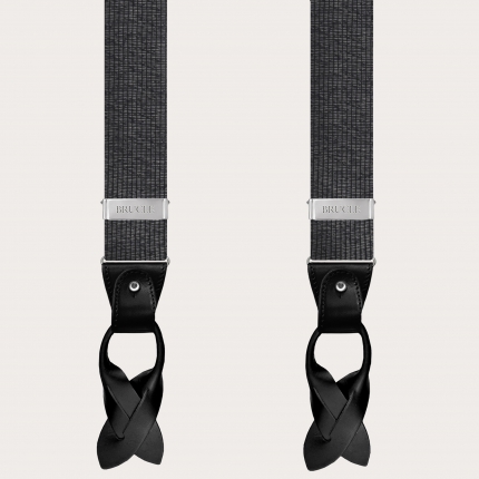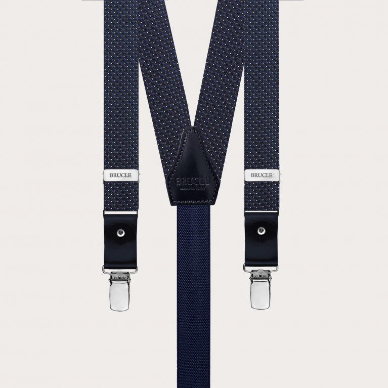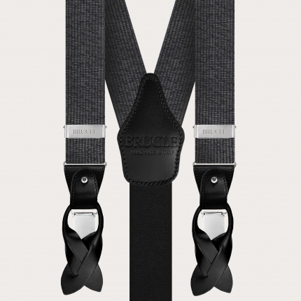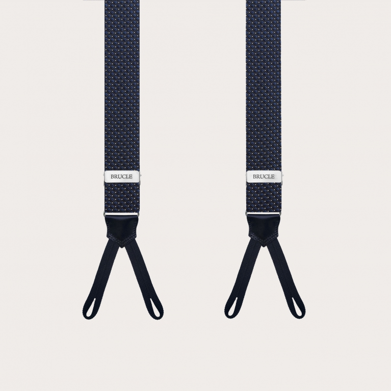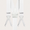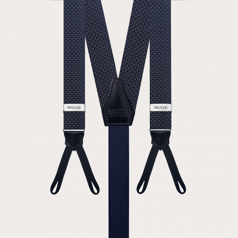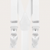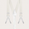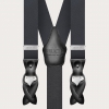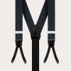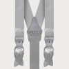 De un encanto distintivo y una finura atemporal, estos tirantes complementan armoniosamente un look contemporáneo o tradicional, asegurando una huella de clase inconfundible. Disponibles con pajaritas y corbatas a juego. Su versatilidad está garantizada por el doble uso: se pueden fijar con botones o clips, adaptándose idealmente a cualquier preferencia de vestimenta. También ofrecen la posibilidad de ser personalizados, con grabados en los clips y acabados en cuero, para dar a cada accesorio un carácter exclusivo y personal.