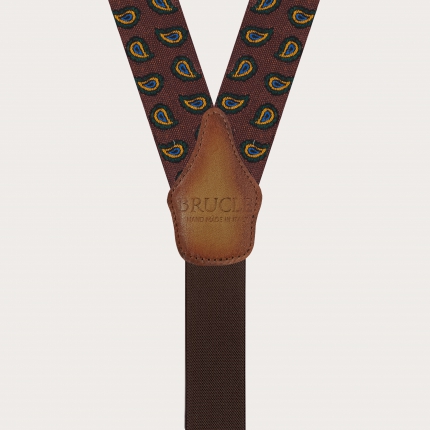 Explora la elegancia innata de los tirantes para hombre en fina seda paisley burdeos, un símbolo del lujo Hecho en Italia.