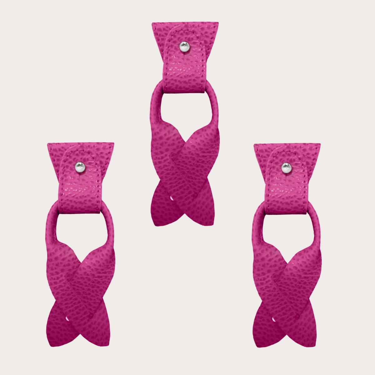 Conjunto de terminales y conectores lazos en piel con estampado dollaro para tirantes convertibles de doble uso con clips y botones. Para un tirante versátil que se puede adaptar a diferentes looks. Diseñado para quienes quieren cambiar el color de sus complementos de piel y crear combinaciones únicas. Colecciónalas en diferentes colores y combínalas para que tus tirantes sean siempre diferentes.