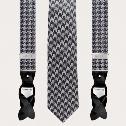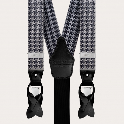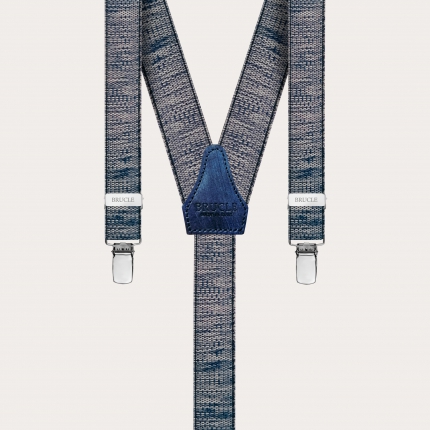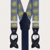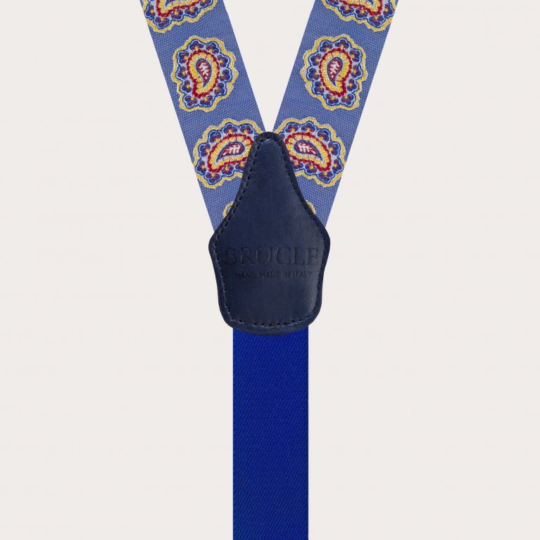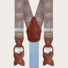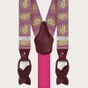 Tirantes de seda morados para hombre con partes metálicas doradas para clips o botones.