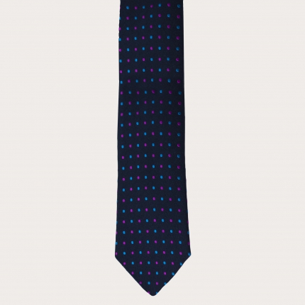 Elegante pajarita en jacquard de seda azul con alfiletero y microestampado geométrico