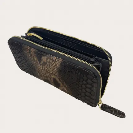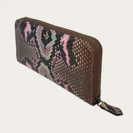 Portefeuille fuchsia or en cuir python zippé, pour femme