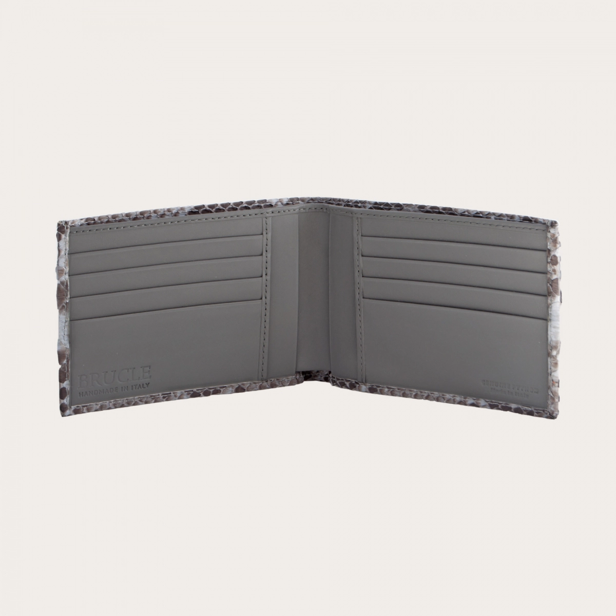 Portefeuille pour homme à deux volets en python opaque d'un gris poudré raffiné. Une nuance de la nouvelle collection qui exprime élégance et raffinement.