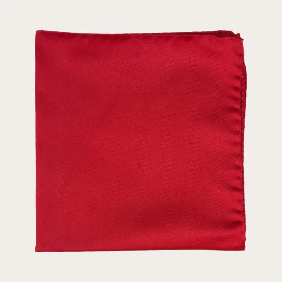 Ensemble coordonné de cravate et pochette en satin de soie rouge