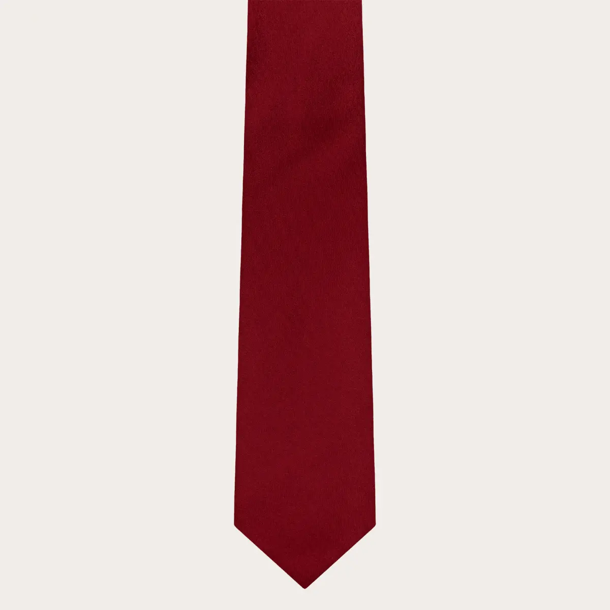 Ensemble coordonné de cravate et pochette en satin de soie bordeaux