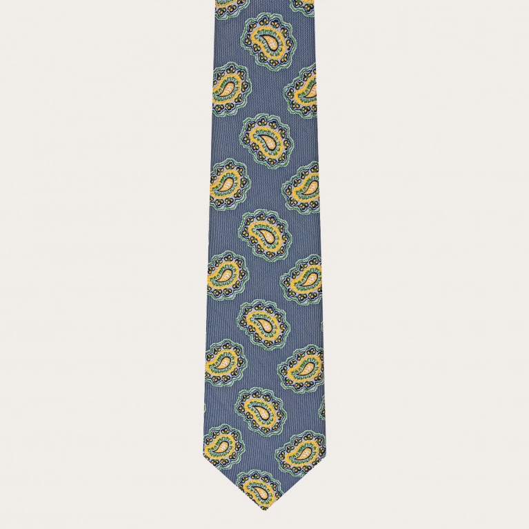 Bretelles et cravate assorties en soie jacquard, bleu