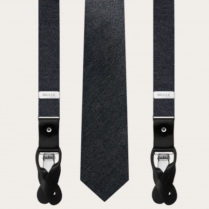 Ensemble bretelles et cravate en soie gris anthracite