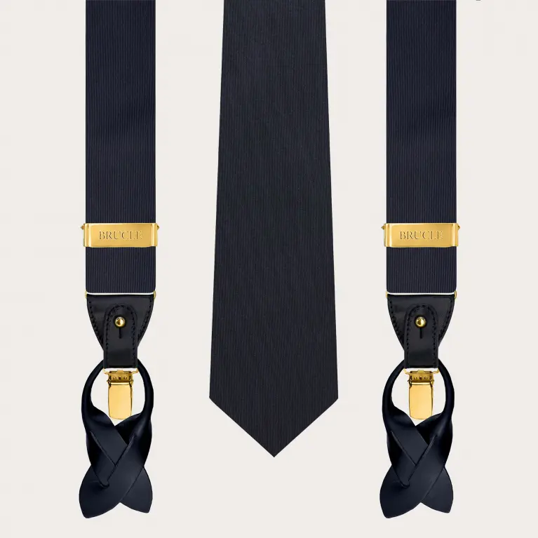 Ensemble Bretelles et Cravate Noires en Satin de Soie