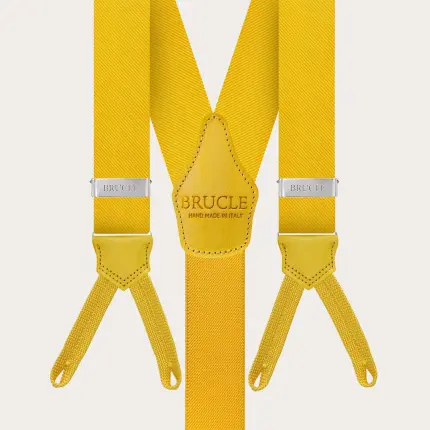Ensemble bretelles pour boutons et cravate en soie jaune
