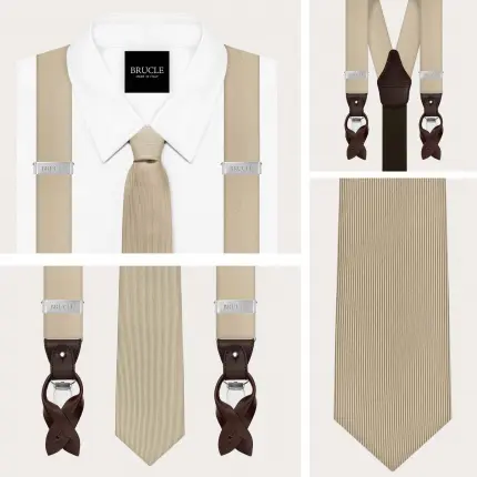 Bretelles et cravate coordonnées en soie champagne