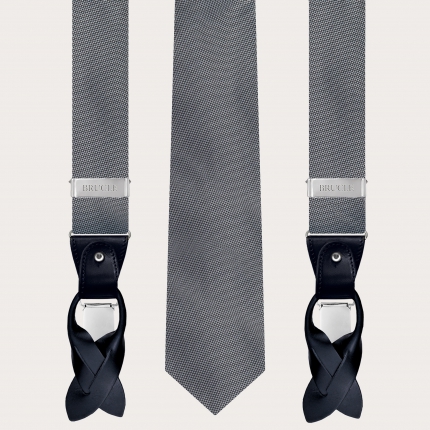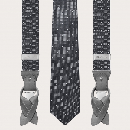 Ensemble bretelles et cravate en soie à pois gris