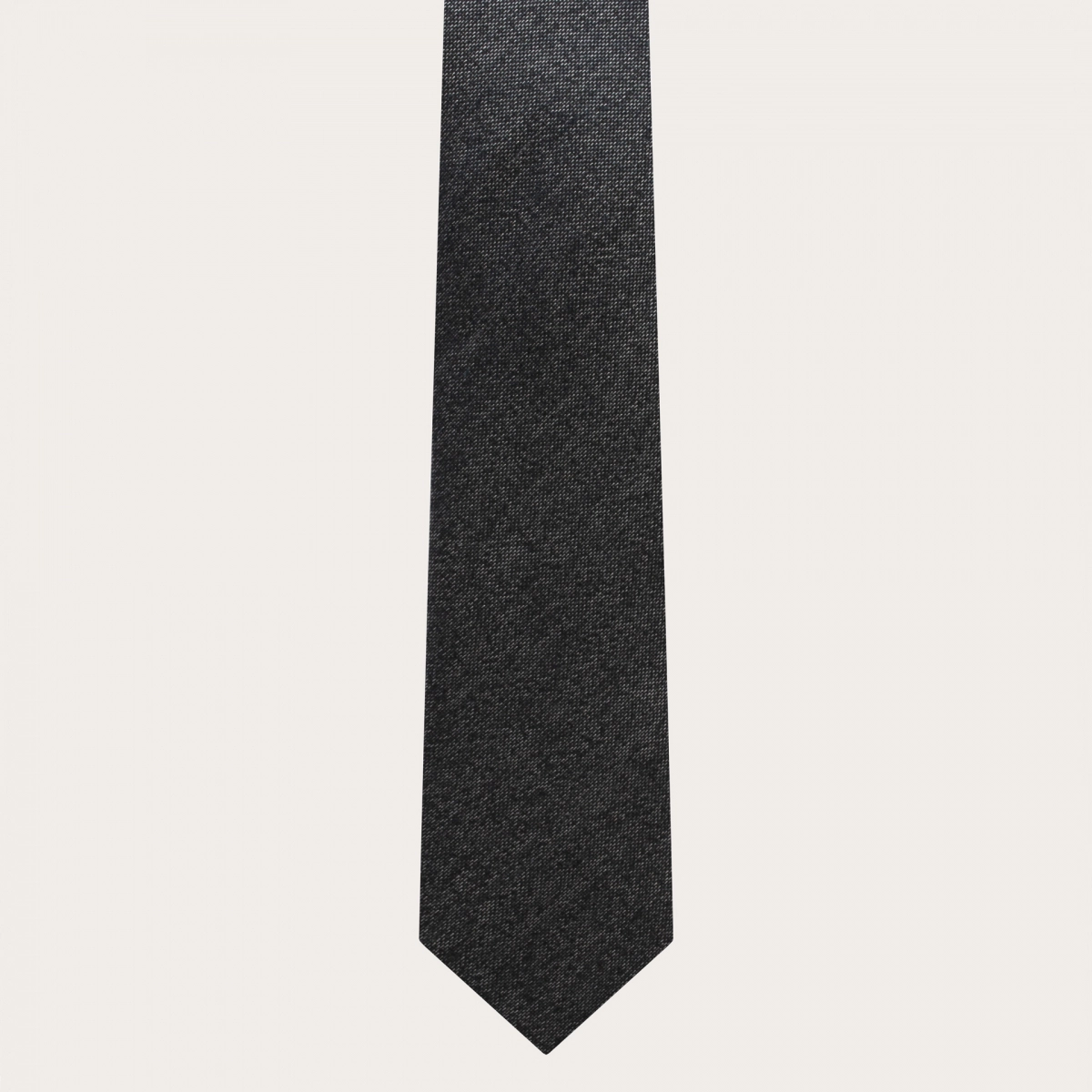 Set de cérémonie composé d’une cravate, d’une pochette et de bretelles larges (36 mm) à boutons, le tout en soie grise melange italienne. Un classique intemporel pour les tenues formelles.