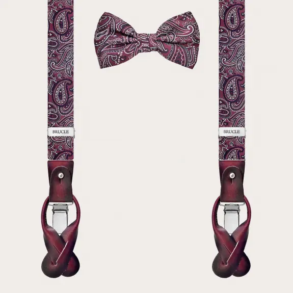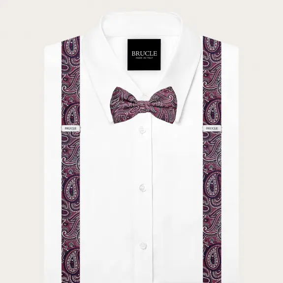 Set coordonné bordeaux paisley bretelles et nœud papillon en soie