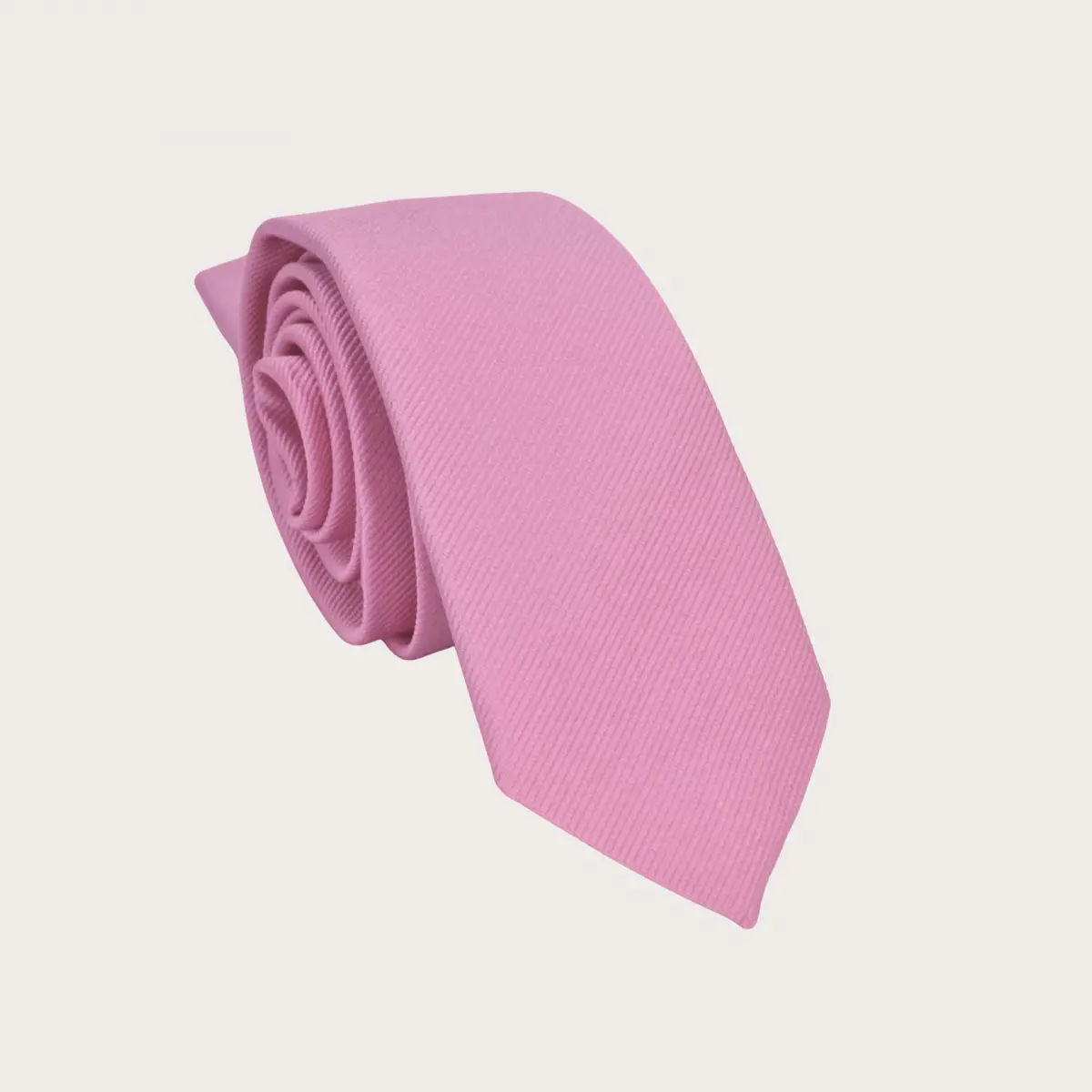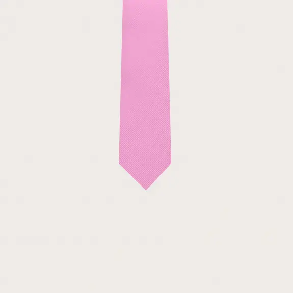 La cravate rose pour enfants de Brucle représente la parfaite combinaison entre l'artisanat italien et la haute qualité des matériaux. Cet accessoire, entièrement fait à la main en Italie, est fabriqué en pure soie filée à Como, reconnue dans le monde entier pour son excellente qualité.