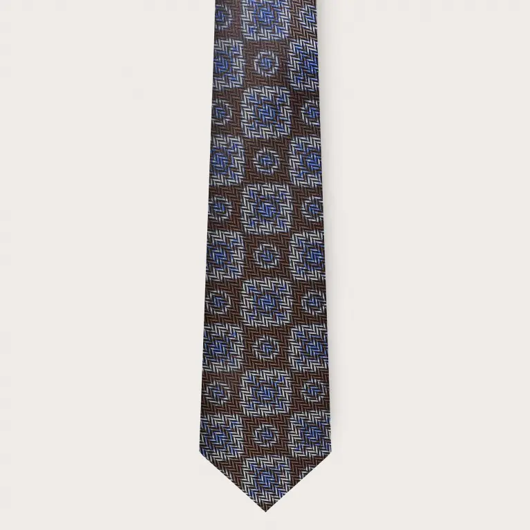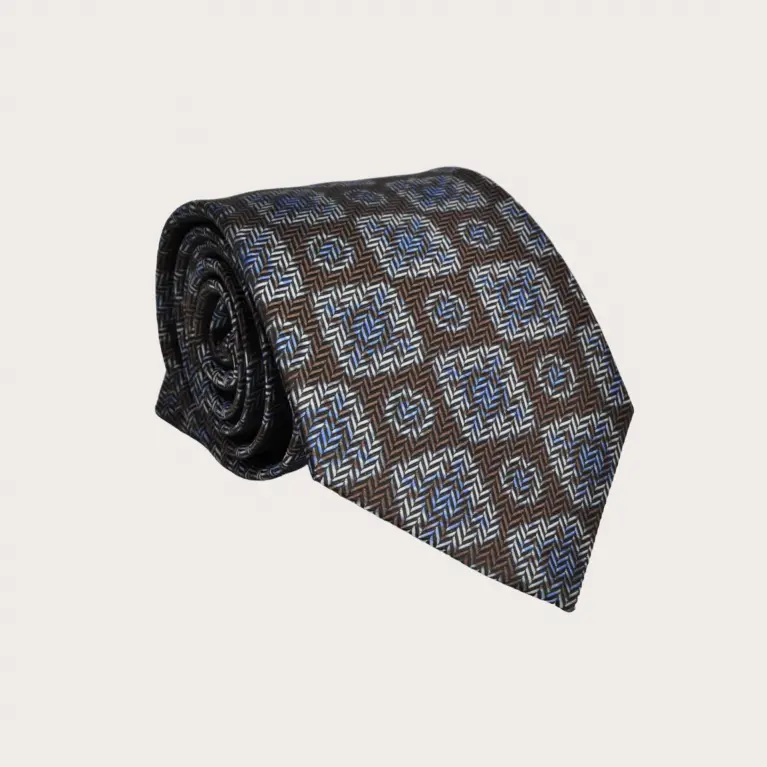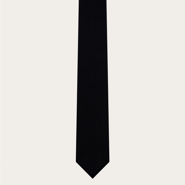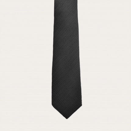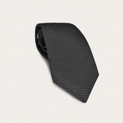 Confectionnée à la main en Italie avec une soie de qualité tissée à Côme, sa structure 3 plis présente une forme semi-bouteille et une largeur de 8 cm.