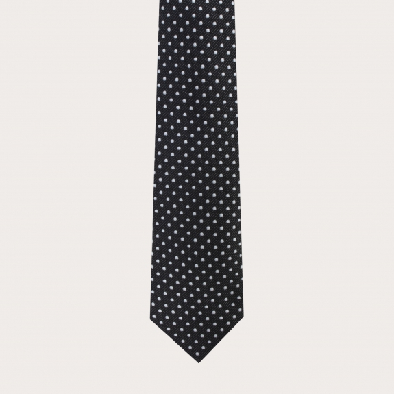 Cette cravate noire en soie coussin pour homme est l'accessoire parfait pour ajouter une touche de sophistication à n'importe quelle tenue formelle.