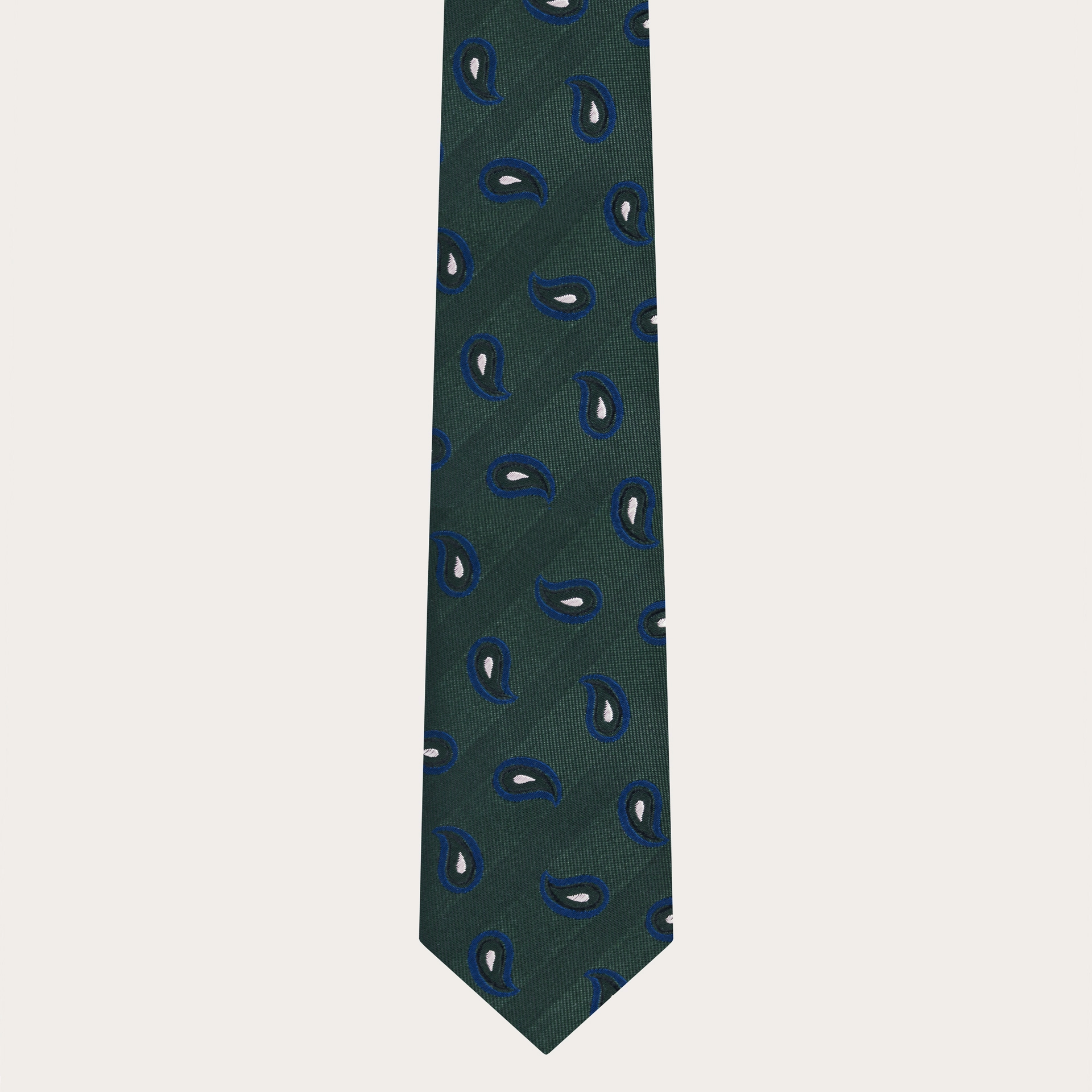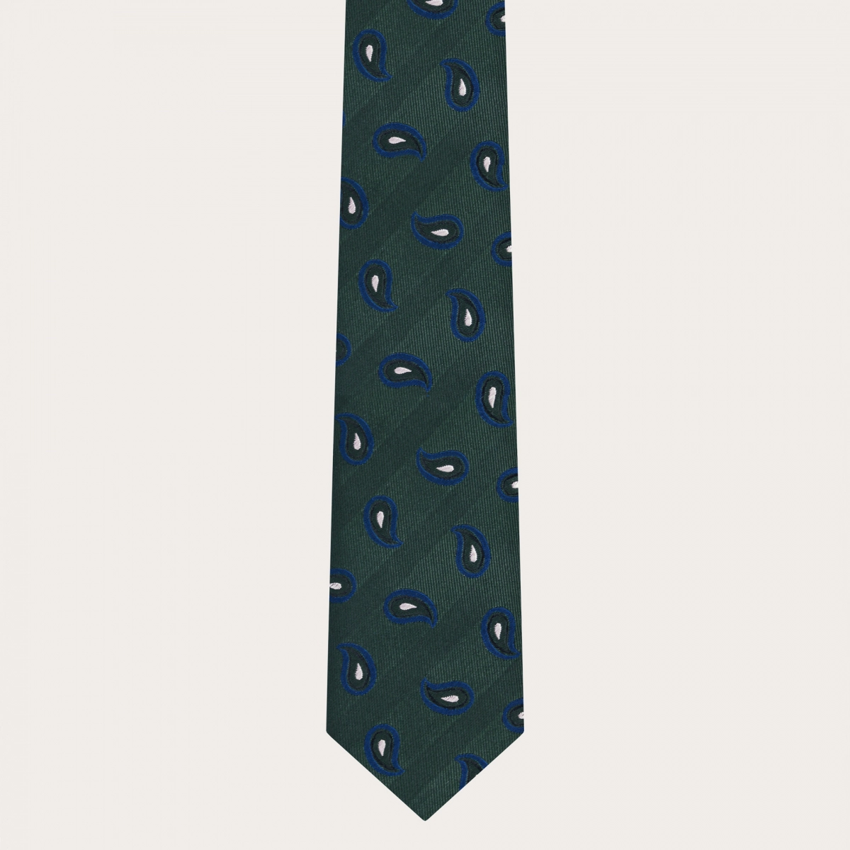 Notre cravate en soie jacquard paisley vert et bleu pour homme est un produit de haute conception, fabriqué en Italie avec de la soie fine à 99 fils. Cette cravate est synonyme de sophistication, de style et d'élégance. Parfait pour tous ceux qui veulent se démarquer avec une touche de classe, c'est une idée cadeau idéale pour l'homme moderne à la recherche d'un accessoire de qualité. Son savoir-faire et son souci du détail en font un produit unique et précieux.