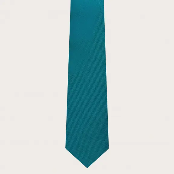 Cravate vert pétrole artisanale réalisée avec des soies de premier choix tissées à Como.