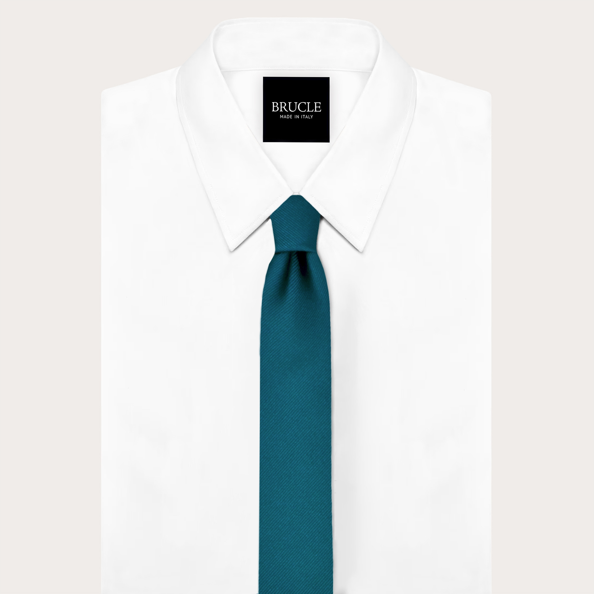La cravate slim en soie couleur pétrole est un accessoire exclusif et de haute qualité, fabriqué artisanalement pour apporter une touche de raffinement à n'importe quelle tenue.